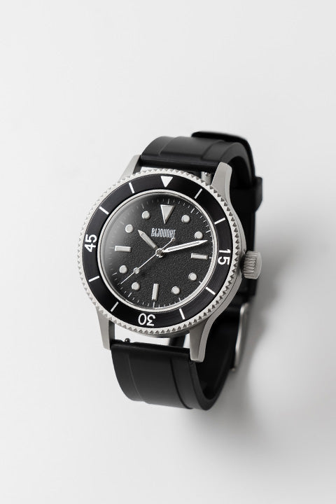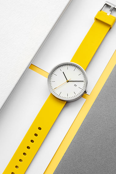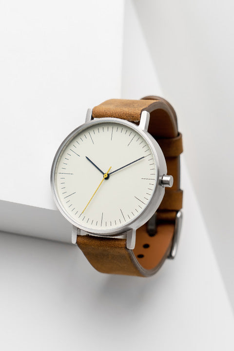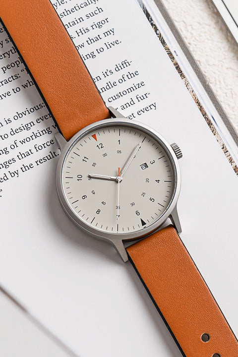 B70 Watch, Silver Case, Beige Dial, Calendar, Luminous, Leather Strap - Black