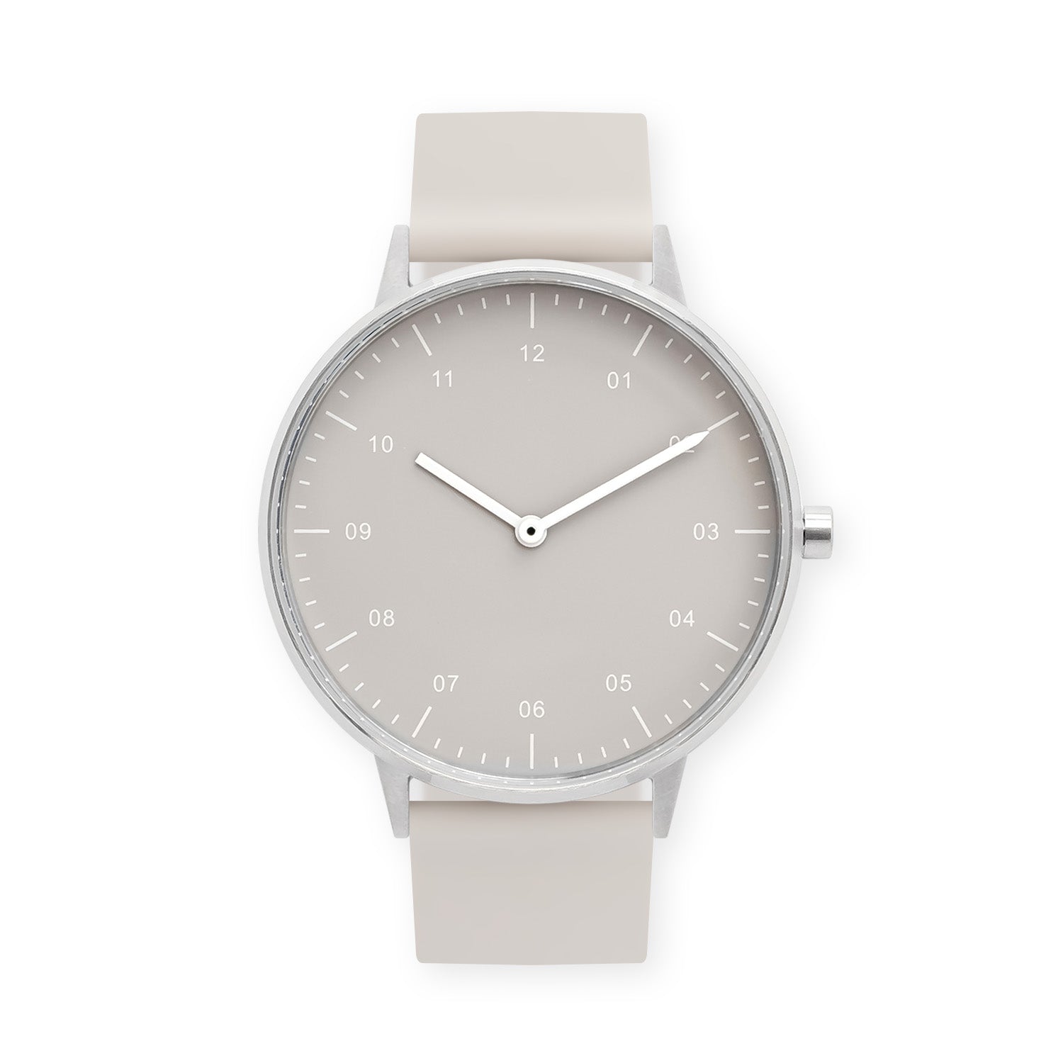 B40 Watch, Silver Case, Beige Dial, Rubber Strap - Beige