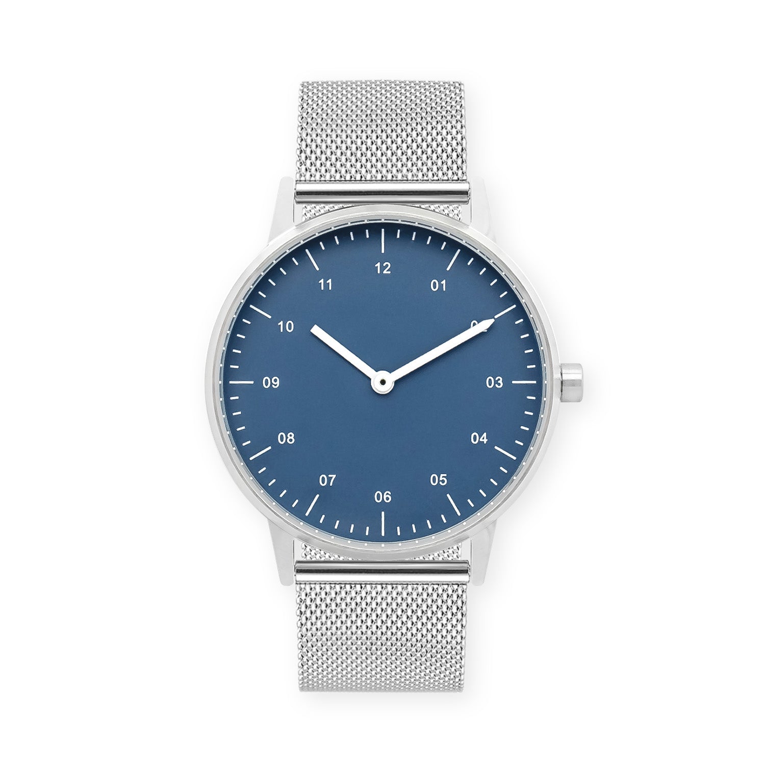 B40 Watch, Silver Case, Classic Blue Dial, Stainless Steel Mesh Strap