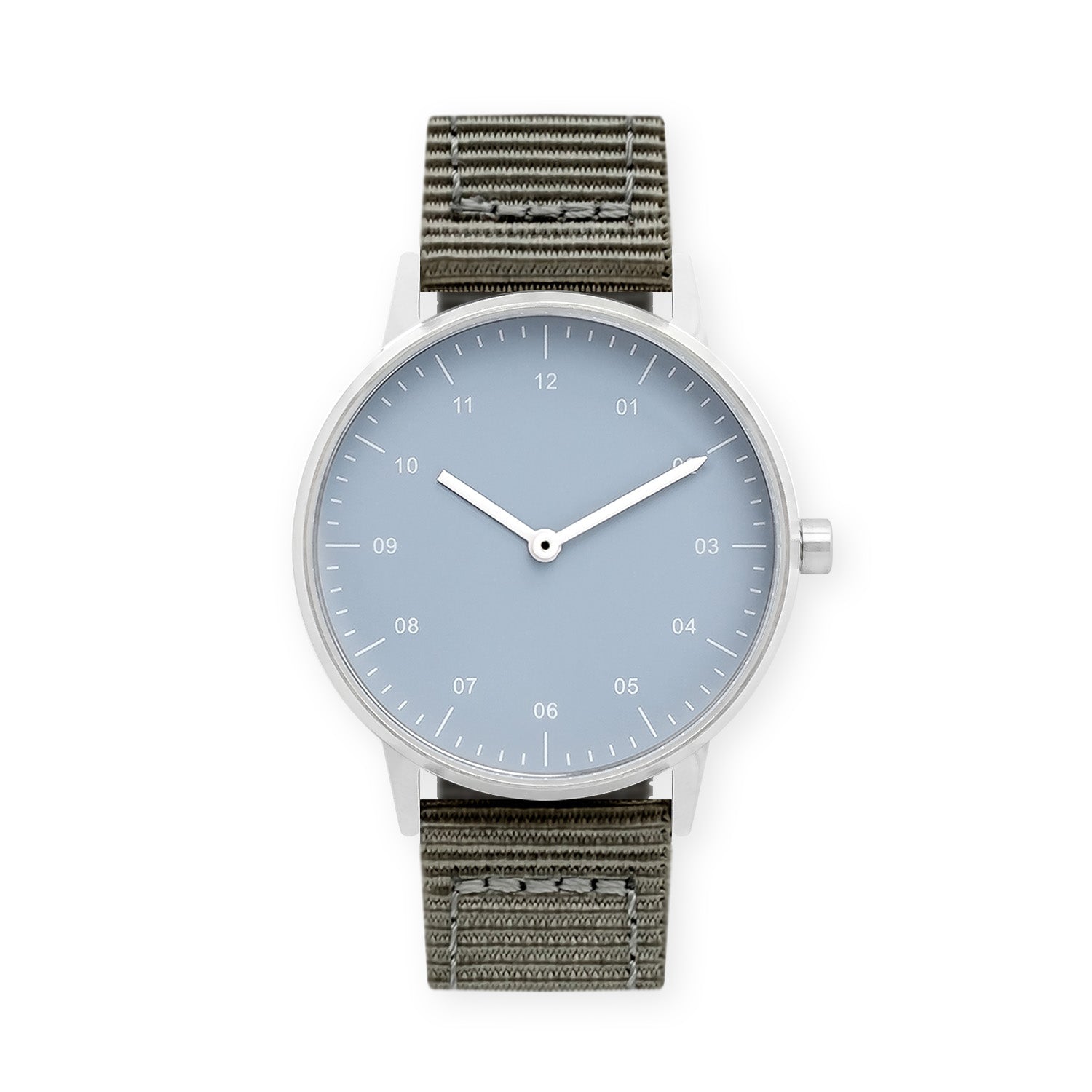B40 Watch, Silver Case, Dusty Blue Dial, Nylon Strap - Gray