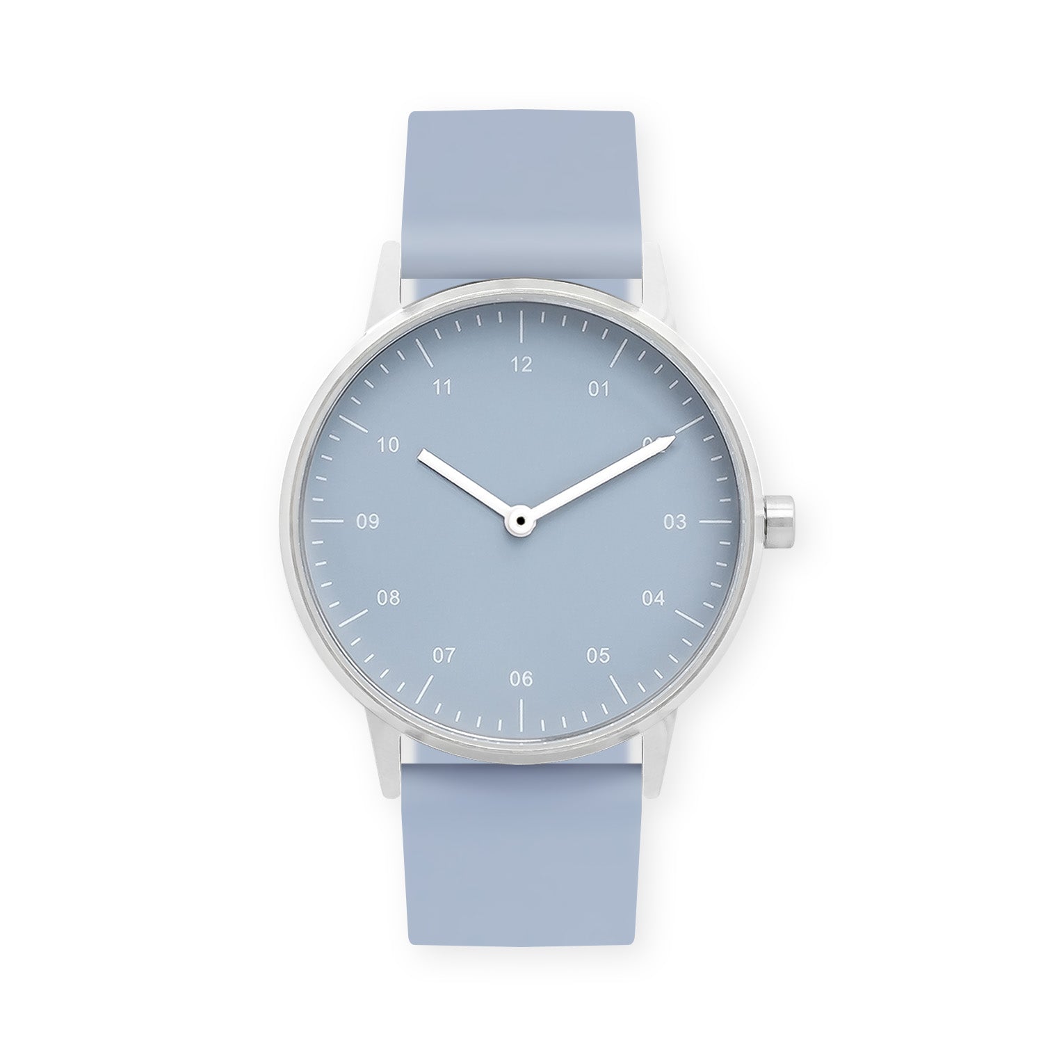 B40 Watch, Silver Case, Dusty Blue Dial, Rubber Strap - Dusty Blue