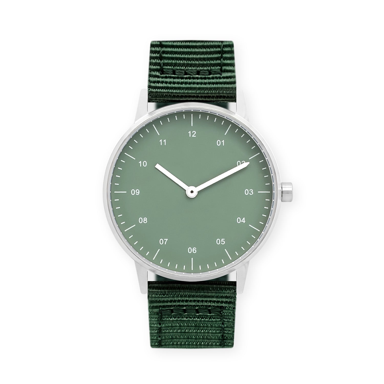 B40 Watch, Silver Case, Green Dial, Nylon Strap - Green